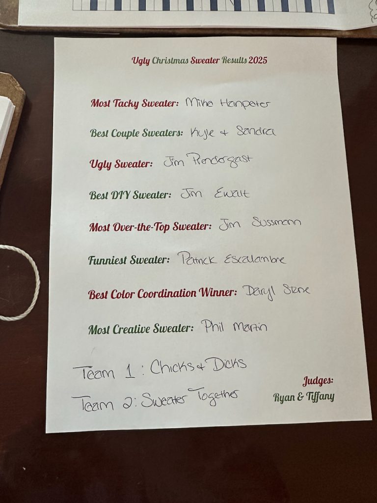 Over the weekend, we had another tremendous edition of the NGC Ugly Sweater Scramble and we owe it all to the amazing NGC family who turned out in style for a day filled with laughter, golf, and joy. A huge thank you to Tiffany and Ryan for getting everything set up and serving as our sweater judges! A big shoutout and thank you to Kyle Armstrong for providing his collection of crazy clubs and to Christine, Mimi and Germame for embracing the golf spirit that makes NGC so special. And thank you to all our members and guests who made the day a true highlight of our 2025 season at NGC.