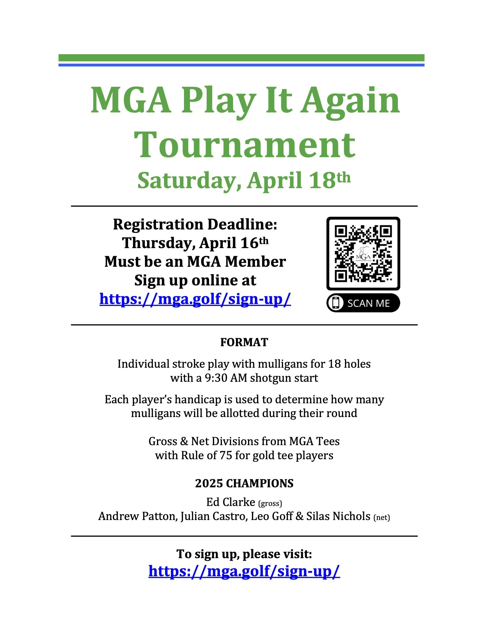 Online Registration Portal: https://mga.golf/MGA-play-it-again